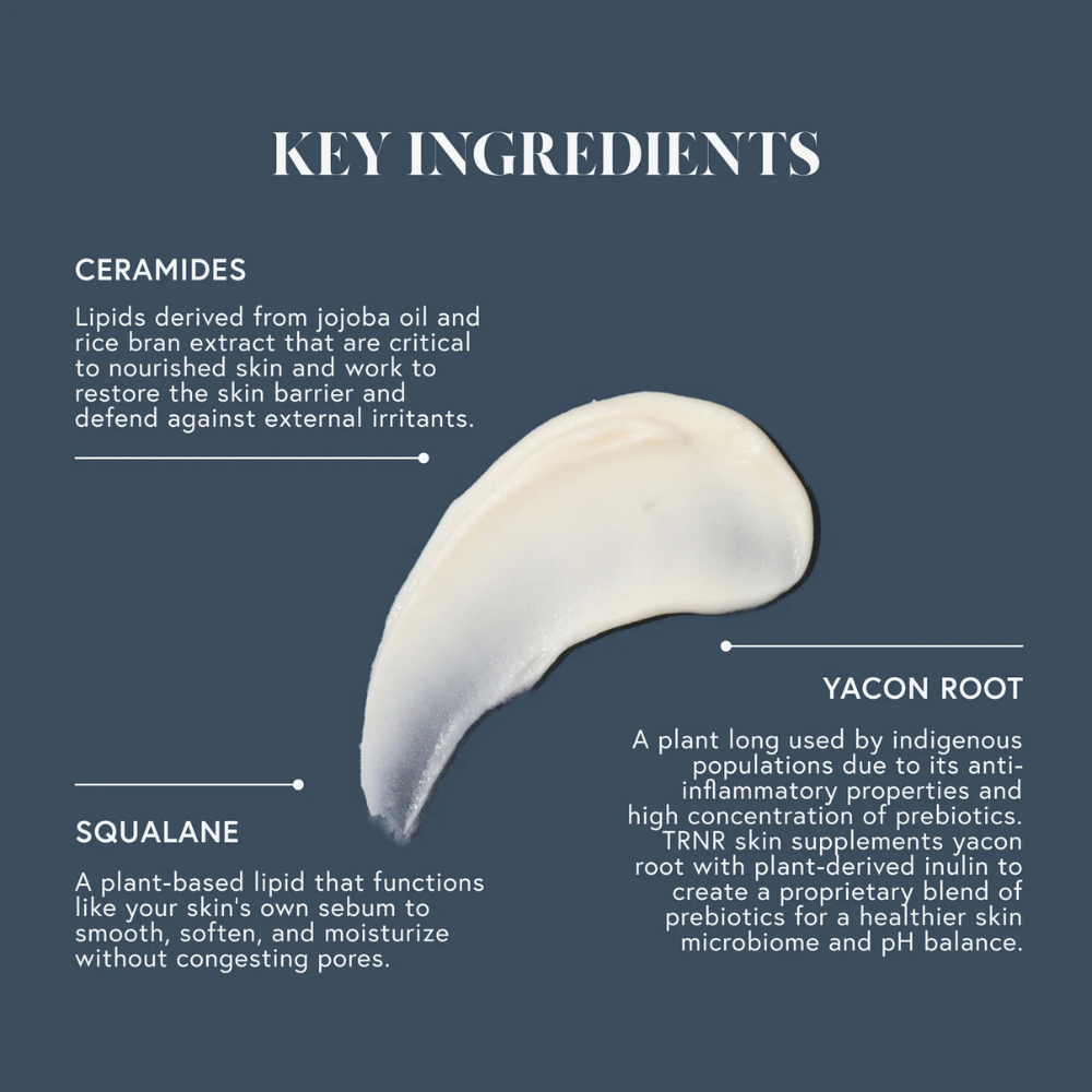 This lightweight, plant-powered moisturizer delivers deep hydration and barrier support with Squalane, Ceramides, and prebiotic-rich Yacon Root and Inulin.